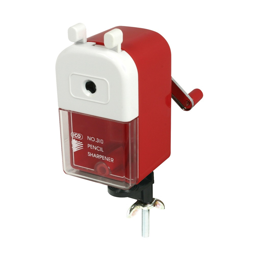 Asztalra rögzíthető hegyezőgép, fém befogóval és hegyező szerkezettel, normál grafit- és színes ceruzák hegyezéséhez. Katalóguskód: 24639