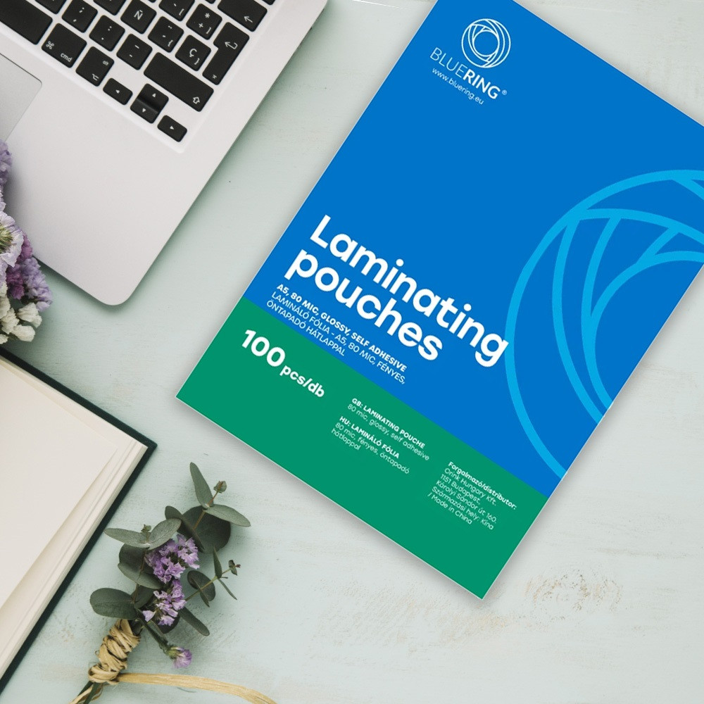 Lamináló fólia A5, 80 micron öntapadó hátlappal 100 db/doboz, Bluering®,