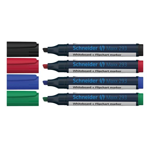 Tábla- és flipchart marker készlet 2-5mm, vágott végű Schneider Maxx 293, 4 klf. szín