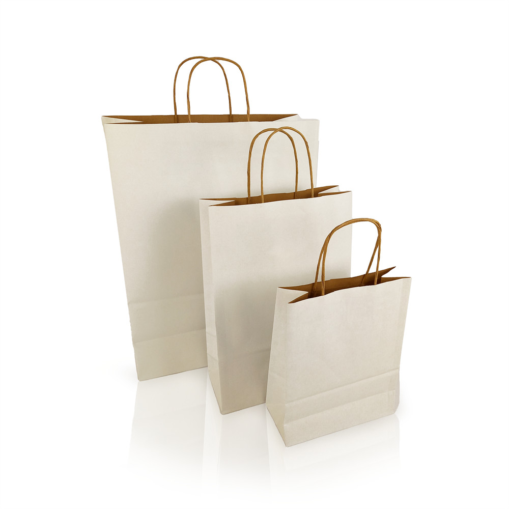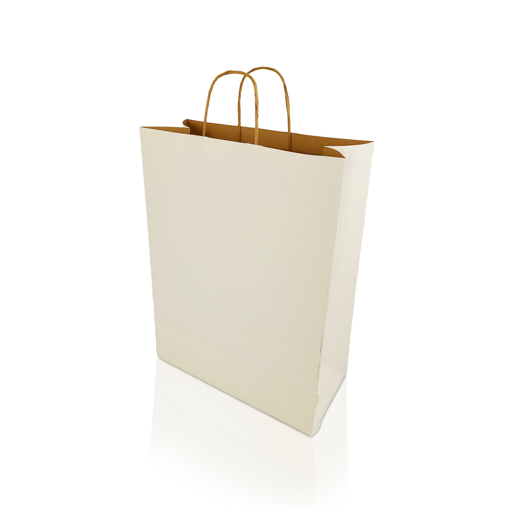 Sodrottfüles papírtáska 320x420mm 150mm talp L méret 200 db/doboz, fehér