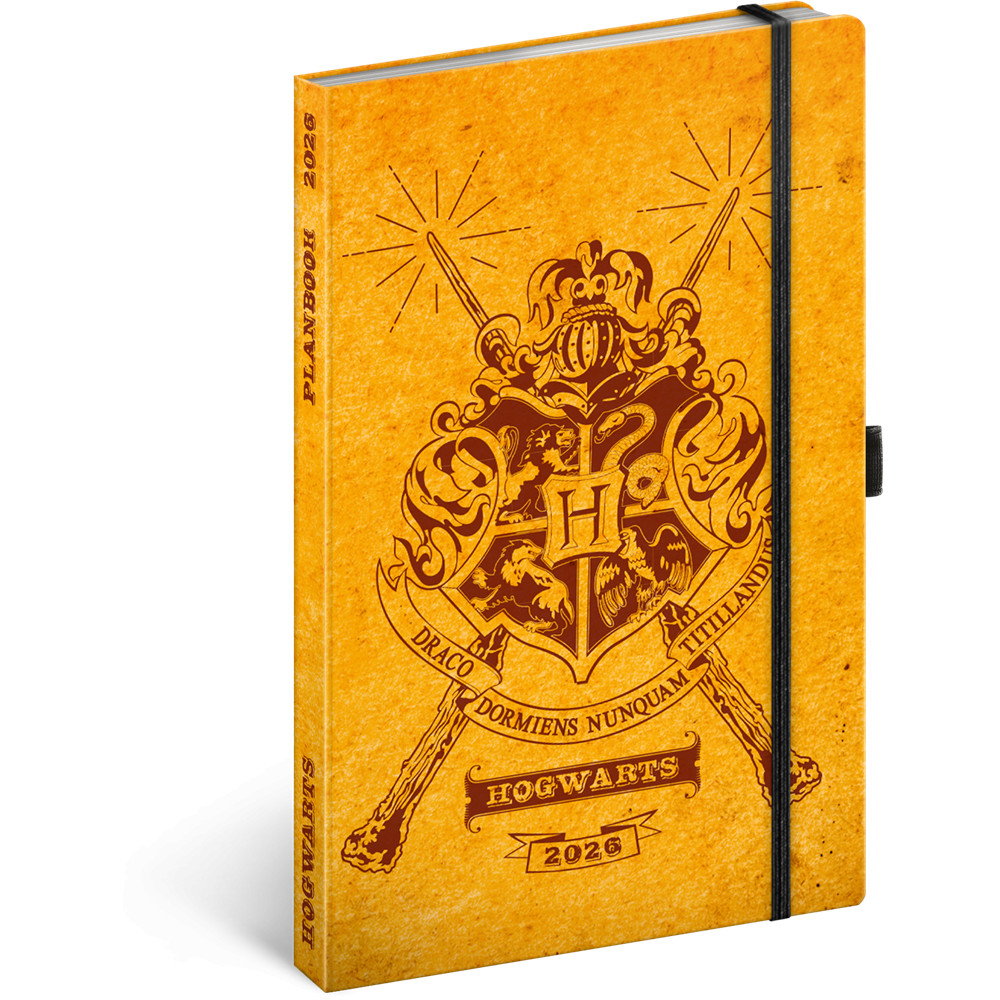 Keménytáblás notesz krémszínű lapokkal leszorító gumiszalaggal Harry Potter-Hogwarts 130x210mm, Presco
